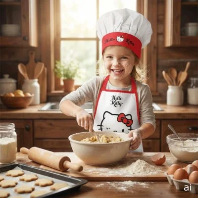 Praktická souprava zástěry a kuchařské čepice s motivem Hello Kitty. Skvěle se hodí do kuchyně, ...