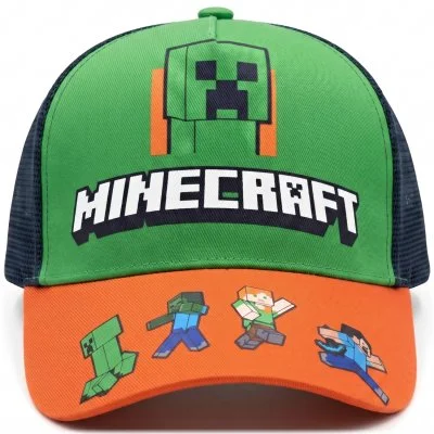 Zeleno-oranžová dětská kšiltovka Minecraft. Nabízíme ji ve velikostech 54 a 56. Ze zadní strany ...
