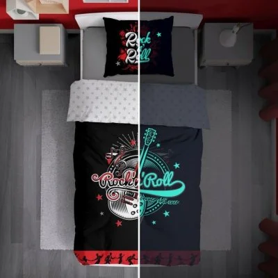 Oboustranné bavlněné povlečení s motivem Rock and Roll a světélkujícím efektem. Rozměr 140×200 ...