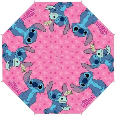 Dětský růžový skládací deštník s motivem Lilo & Stitch. Průměr roztaženého deštníku je cca ...