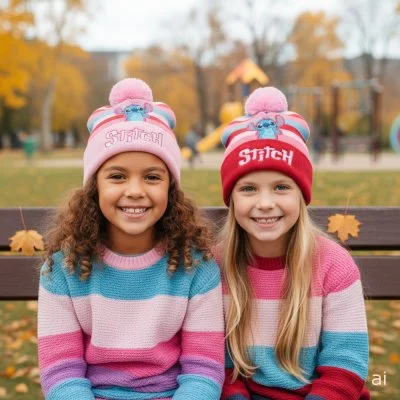 Dětská zimní čepice Lilo & Stitch. Vyrobena z hřejivého akrylového úpletu s nášivkou ...