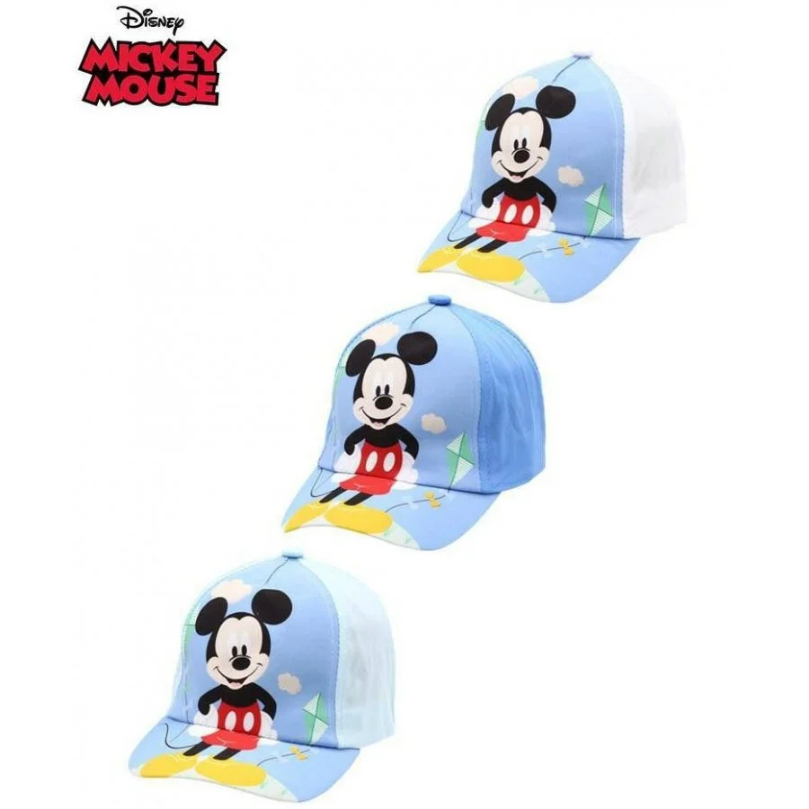 Dětská / baby baseballová čepice pro batolata Mickey Mouse - Disney. Přední stranu kšiltovky zdobí obrázek legendárního myšáka Mickey a jeho papírového draka. Zadní strana čepice a spodní část kšiltu je světle, či středně modrá, nebo bílá - viz výběr barvy a velikosti kšiltovky. Ze zadní strany je nastavovací pásek se suchým zipem. Tato baby kšiltovka poskytuje ochranu před ultrafialovým zářením stupně UPF 30+