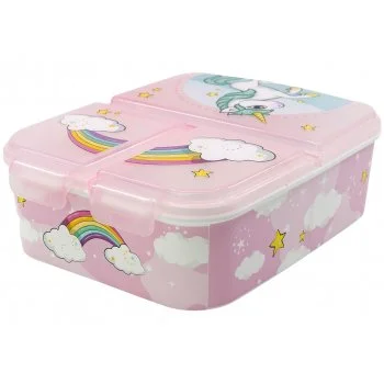 Dětský svačinový multibox s jednorožcem a duhou. Odolná krabička na svačinu je ideální do školy, ...