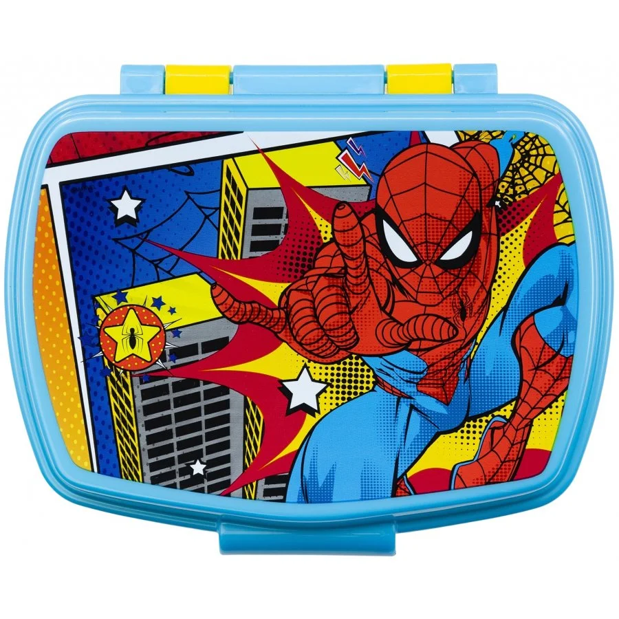 Svačinový box Spiderman - licence MARVEL. Praktický box na svačinu ideální do školy, na výlety nebo jen tak do parku. Víko zdobí oblíbený motiv Spidermana, který děti potěší a krabičku si oblíbí nejen na svačiny, ale i na drobné hračky. Box je vyroben z odolného, zdravotně nezávadného materiálu bez obsahu BPA. Je vhodný pro děti od 3 let. Není určen do myčky ani mikrovlnky. K čištění se nedoporučuje používat abrazivní čisticí prostředky ani detergenty. Rozměry jsou cca 17 x 14 x 5,6 cm.