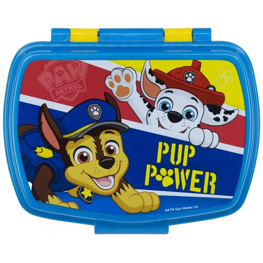 Svačinový box Tlapková patrola - Paw Patrol - motiv Pup Power. Tato praktická krabička na svačinu je ideální do školy, na cesty a výlety. Víko zdobí obrázek oblíbených psích záchranářů, policisty Chase a hasiče Marshalla. Box je vhodný pro děti od 3 let. Není určen do myčky na nádobí ani do mikrovlnné trouby. Při čištění nepoužívejte abrazivní prostředky ani silné detergenty. Rozměry boxu jsou cca 17 x 14 x 5,6 cm, ideální na dětskou svačinu či drobné předměty.