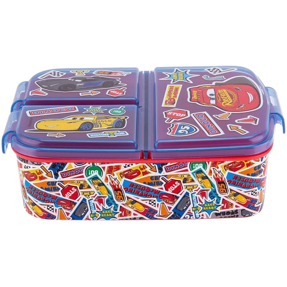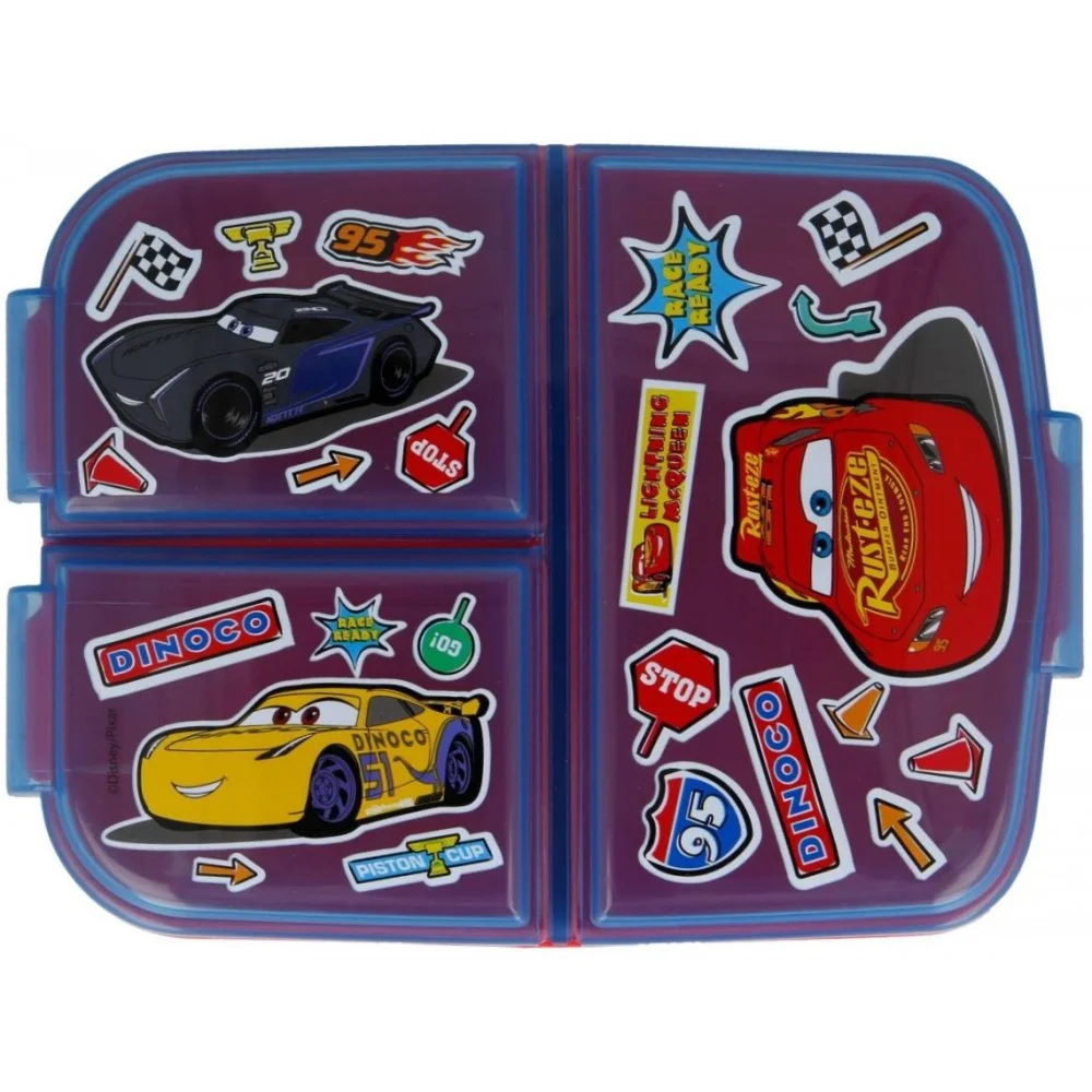 Svačinový multibox se třemi přihrádkami s motivem Auta z oblíbené animované pohádky Cars od Disney. Ideální do školy i na výlety. Vyroben bez obsahu BPA, vhodný pro děti od 4 let.