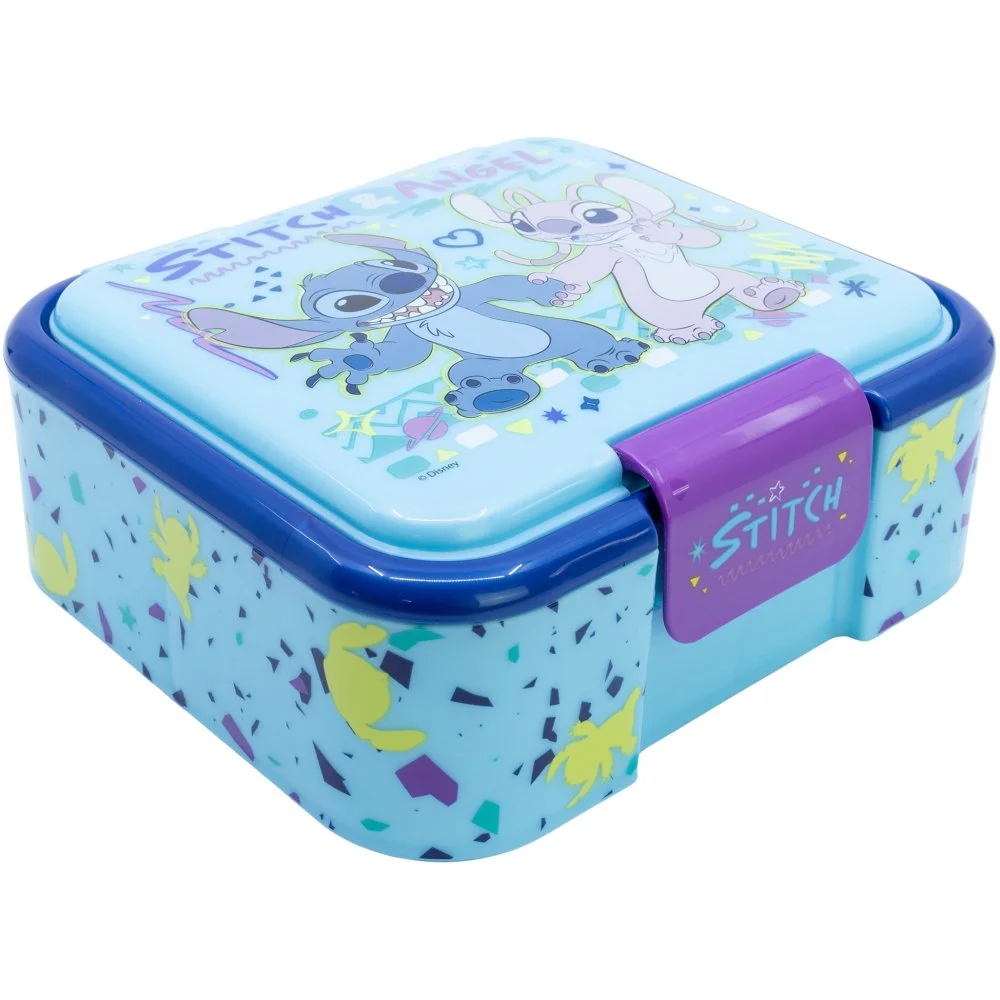 Multibox na svačinu s motivem Stitch & Angel z oblíbené animované pohádky Lilo a Stitch. Tři přihrádky pro přehledné uložení jídla. Ideální do školy i na výlety. Odolný materiál bez obsahu BPA, bezpečný pro styk s potravinami. Vhodný pro děti od 4 let.