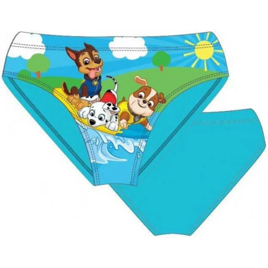 Slipové plavky pro kluky Tlapková patrola - Paw Patrol. Přední stranu plavek zdobí obrázek psích záchranářů Chase, Marshalla a Rubble, kteří se vozí na surfovém prkně. Na spodní části je z vnitřní strany jemná bílá podšívka. Zadní část plavek je modrá, nebo tyrkysová - viz ... Celý text