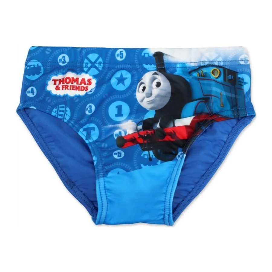 Dětské slipové plavky pro kluky Lokomotiva Tomáš. Přední stranu plavek zdobí obrázek mašinky ...