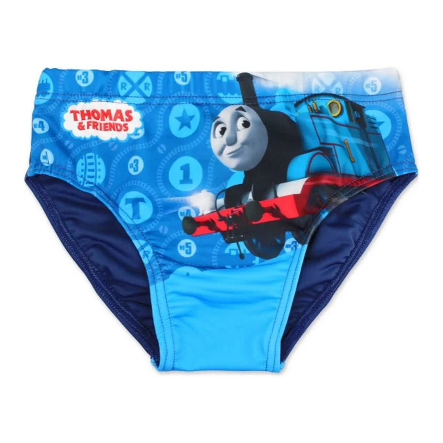 Dětské slipové plavky pro kluky Lokomotiva Tomáš. Přední stranu plavek zdobí obrázek mašinky ...
