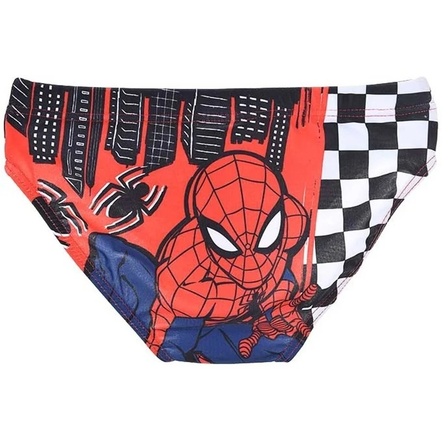 Slipové plavky pro kluky Spiderman. Přední stranu plavek zdobí obrázek komiksového a filmového ...