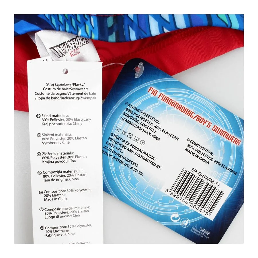 Slipové plavky pro kluky Spiderman. Přední stranu plavek zdobí obrázek komiksového a filmového superhrdiny Spidermana. Na spodní části je z vnitřní strany jemná bílá podšívka. Zadní část plavek je červená. V pase a v lemu nohavic je všitá guma. Materiál plavek je elastický, takže se dobře přizpůsobí tělu a pohodlně se nosí.