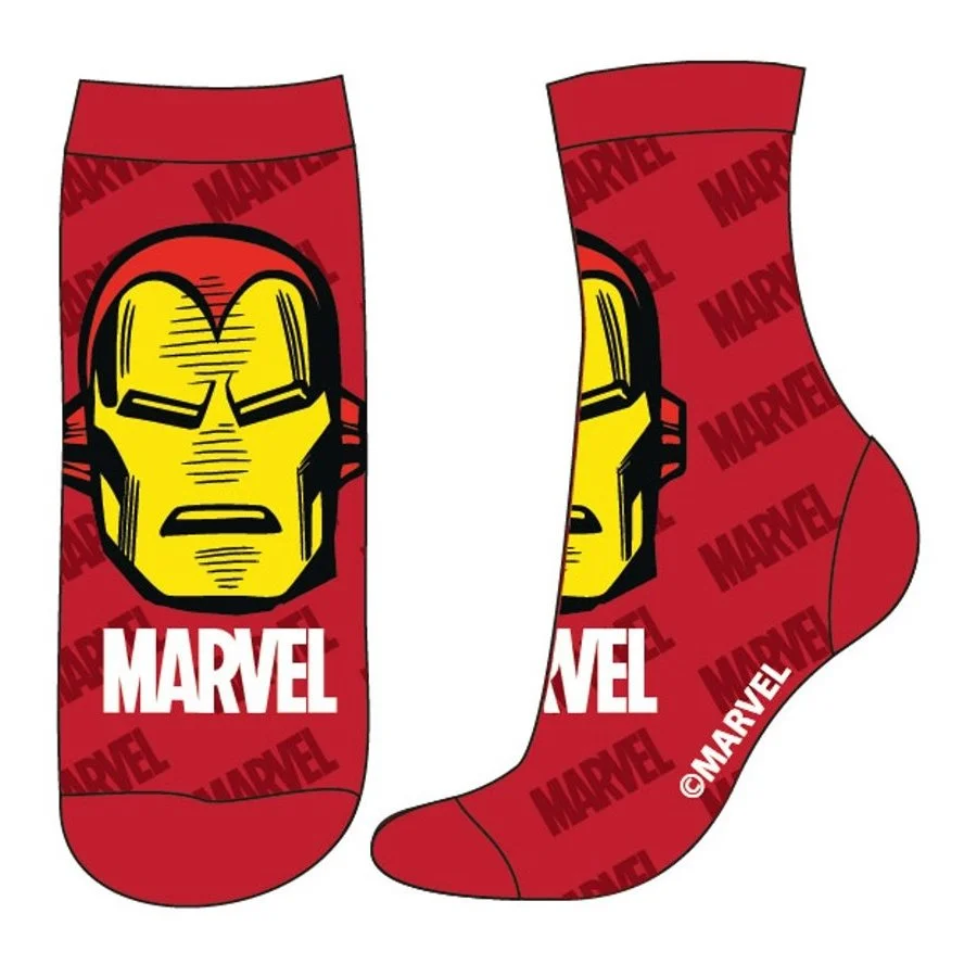Dětské ponožky Avengers - MARVEL. Nabízíme tři varianty těchto ponožek - červené s obrázkem Iron Mana, modré s obrázkem Kapitána Ameriky a bílé lehce melírované s obrázkem Neuvěřitelného Hulka.
