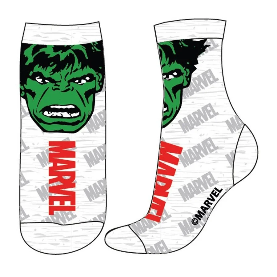 Dětské ponožky Avengers - MARVEL. Nabízíme tři varianty těchto ponožek - červené s obrázkem Iron Mana, modré s obrázkem Kapitána Ameriky a bílé lehce melírované s obrázkem Neuvěřitelného Hulka.