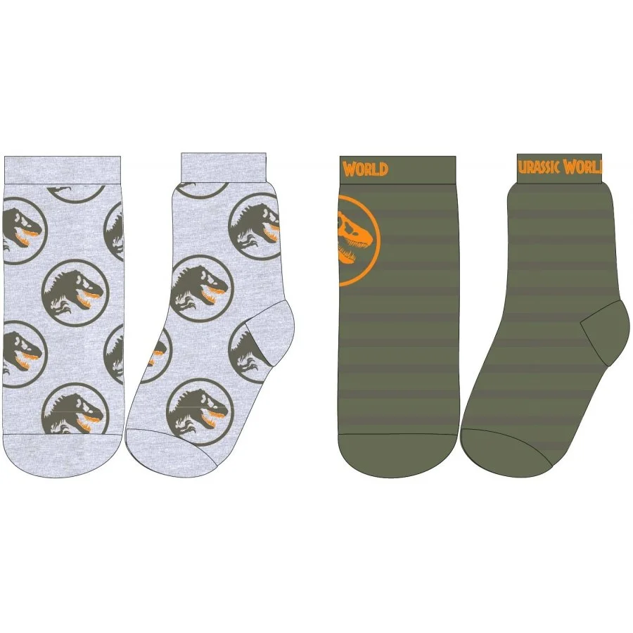 Dva páry ponožek Jurský svět. Oba páry zdobí loga Jurského parku s Tyranosaurem Rexem. Tyto ponožky získaly mezinárodní certifikát OEKO-TEX STANDARD 100, který zaručuje rozměrovou a barevnou stálost materiálu i to, že výrobek neobsahuje škodlivé látky.