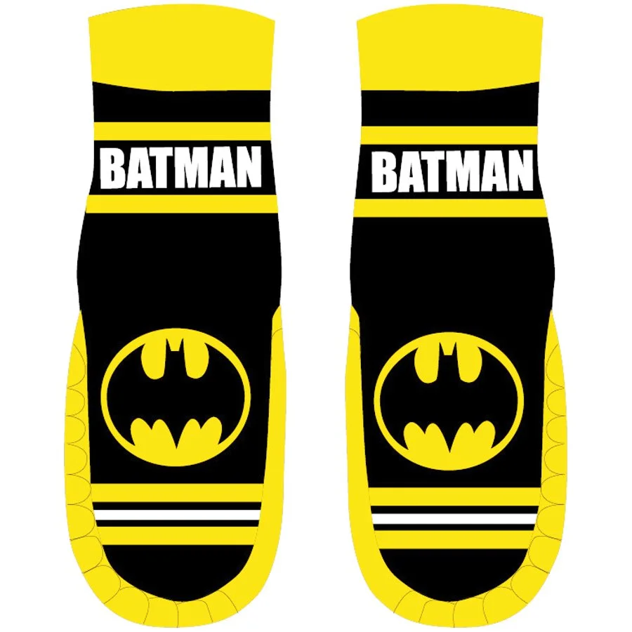 Dětské ponožky / papuče (2 v 1) s protiskluzovou podrážkou s nopky Batman. Jsou ideální pro chůzi a běhání po kluzkém povrchu doma. Podrážka je silná, měkká a proto jsou ponožky pohodlné a vaše dítě si je jistě oblíbí. Z důvodu síly podrážky a jejímu šití k tělu ponožky nelze tyto ponožky použít do bot odpovídající velikosti.