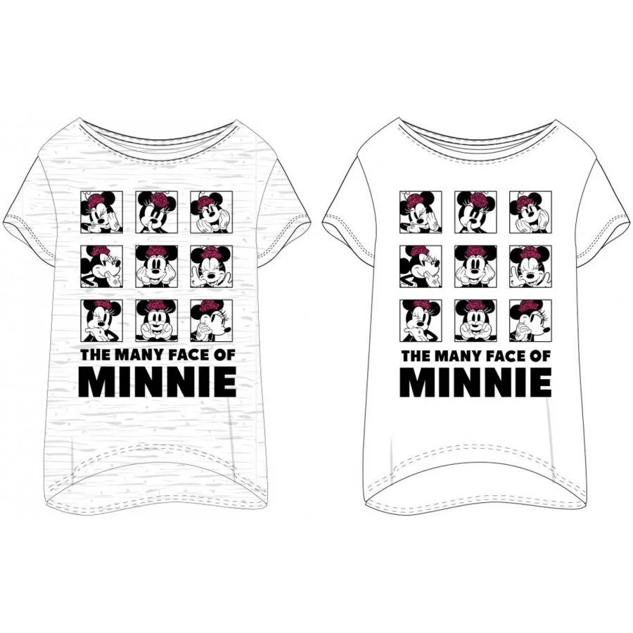 Dámské dlouhé spací tričko Disney - motiv The many face of Minnie. Zdobí jej opravdu mnoho tváří myšky Minnie, a to vždy s kloboučkem, který je třpytivý. Nabízíme bílou variantu, která je vyrobena ze 100% bavlny a šedě melírovanou variantu, která je vyrobena z 50% bavlny a 50% polyesteru.