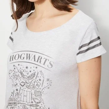Dámské dlouhé spací tričko / noční košile Harry Potter. Na přední straně je velký nápis HOGWARTS ...