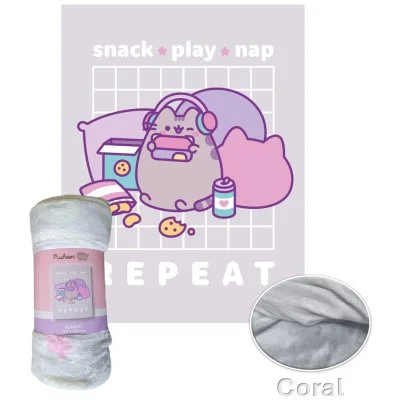 Coral fleece deka Pusheen – Snack • Play • Nap & Repeat