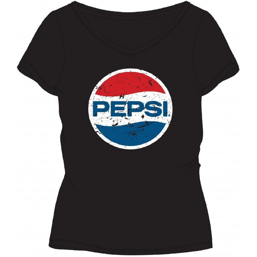 Dámské tričko s výstřihem do "véčka" a krátkým rukávem PEPSI. Toto tričko nabízíme v bílém, nebo černém provedení s různým typem loga PEPSI - viz obrázky produktu a výběr velikosti a barvy níže.