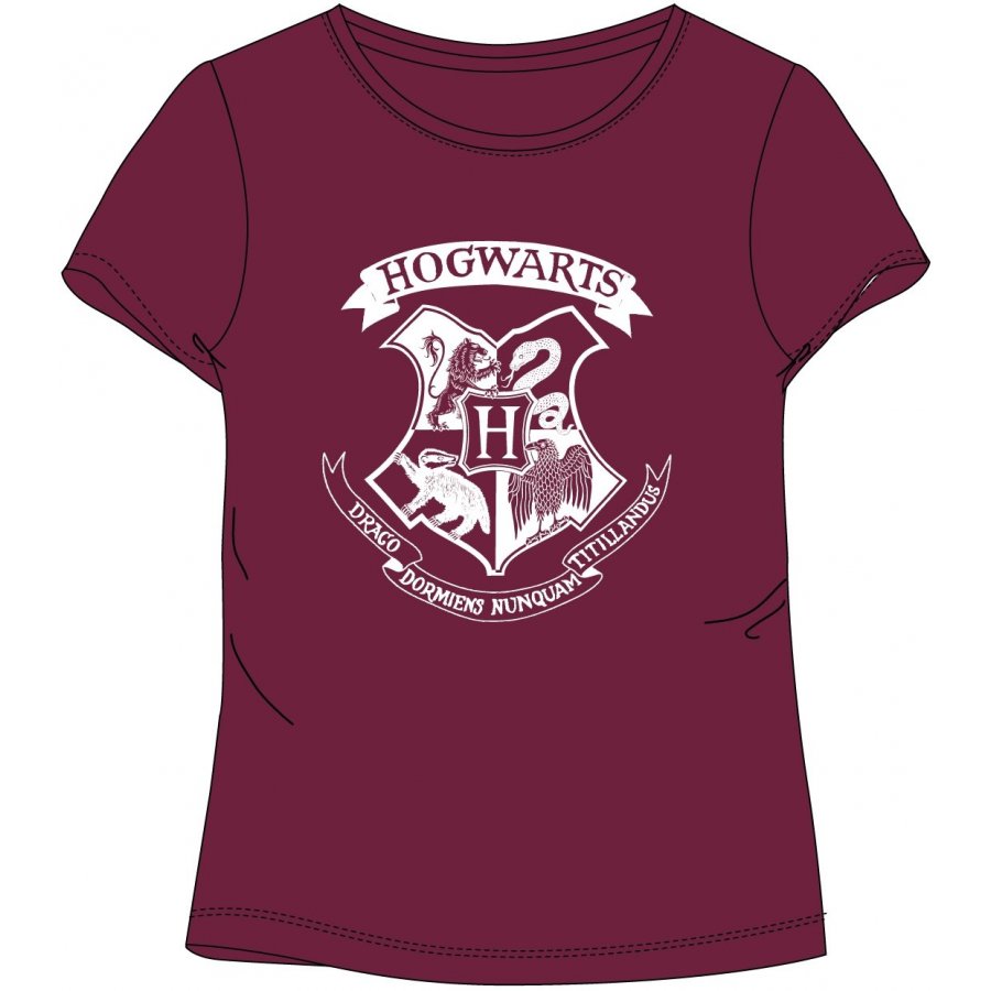 Dámské tričko s kulatým výstřihem a krátkým rukávem Harry Potter s logem školy čar a kouzel v Bradavicích na hrudi. Toto tričko nabízíme v černém, nebo červenohnědém provedení - viz výběr velikosti a barvy níže.