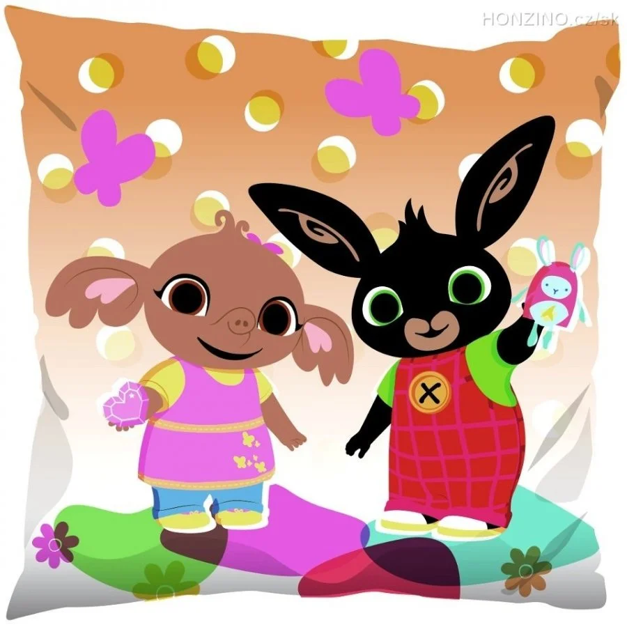 Dětský polštářek s motivem Veselého Zajíčka Binga. Povlak je vyroben z hebkého veluru o gramáži ...