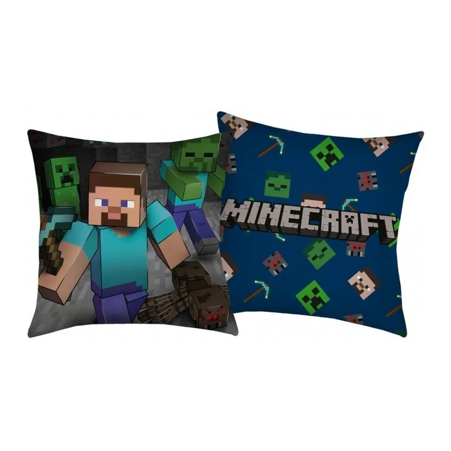Dekorační polštářek Minecraft - motiv Steve. Je vyrobený z příjemného a jemného materiálu s výplní, která je pevně zašitá uvnitř. Obě strany polštáře mají rozdílný potisk - viz obrázek. Rozměry polštáře jsou 40 x 40 cm.