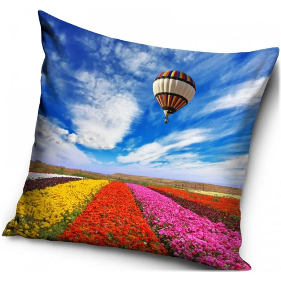 Polštář s motivem Let balonem nad pestrobarevnými záhony. Povlak polštáře je vyroben z příjemně jemného nemačkavého materiálu a má zapínání na zip. Obě strany zdobí stejný obrázek. Výplň je zašitá ve vlastním obalu. Je tedy vyjímatelná pro snazší údržbu povlaku. Rozměr polštáře je cca 40 x 40 cm ± 2 cm.