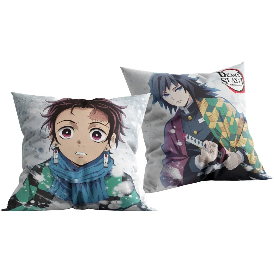 Dekorační polštářek Demon Slayer: Kimetsu no Yaiba - Zabiják démonů - motiv Tandžiró a Tomioka. Je vyrobený z příjemného a jemného materiálu s výplní, která je zašitá uvnitř a není vyjímatelná. Na jedné straně polštáře je obrázek mladého chlapce Tandžiró Kamado, na druhé straně je obrázek Giyuu Tomioka, kteří jsou hlavními postavami japonské mangy Zabiják démonů. Rozměry tohoto polštáře jsou 40 x 40 cm.