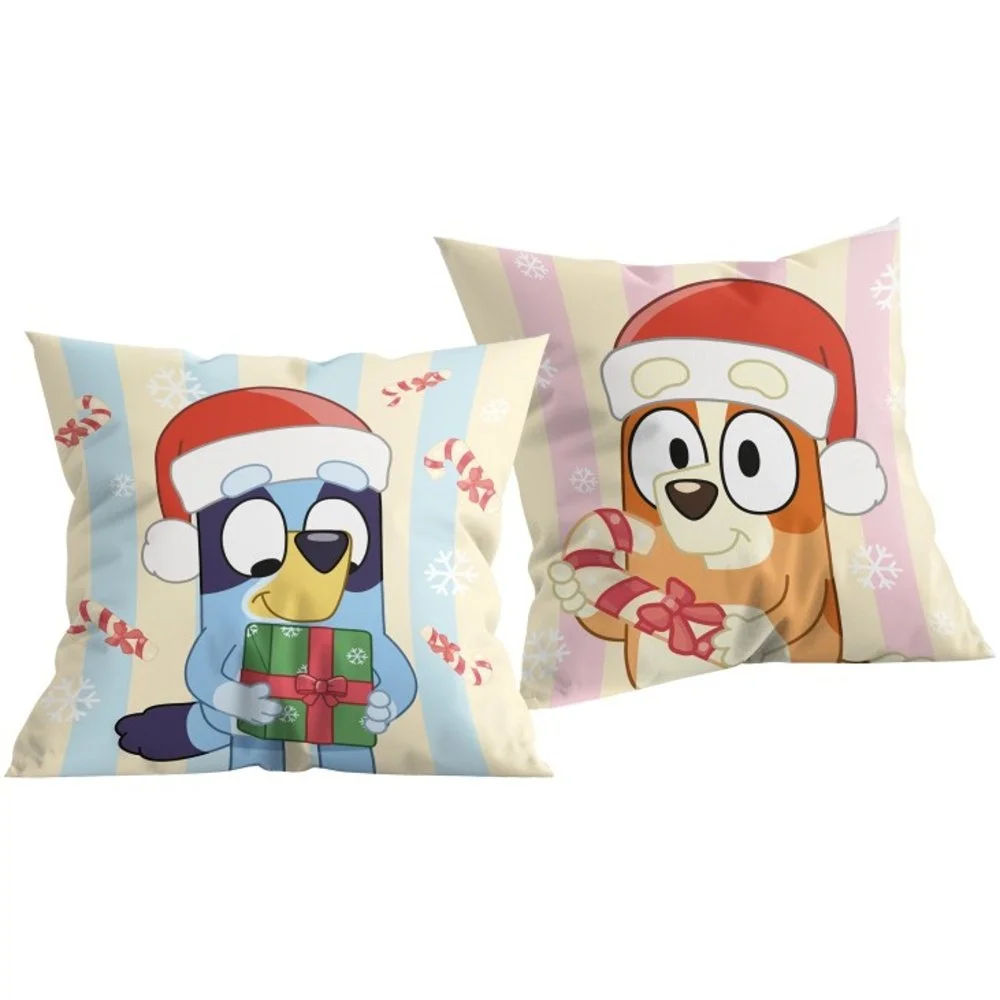 Dekorační polštář Bluey & Bingo s vánočním motivem potěší všechny fanoušky i fanynky oblíbeného seriálu Bluey. Polštář je vyroben z kvalitního materiálu příjemného na dotek a jeho rozměry jsou 40 x 40 cm. Oboustranný design se sestrami Bluey a Bingo ve vánočních čepičkách rozzáří každý dětský pokoj a vnese do něj sváteční atmosféru.