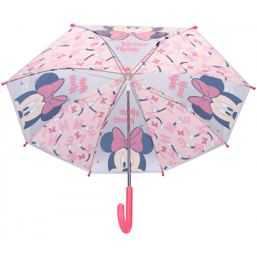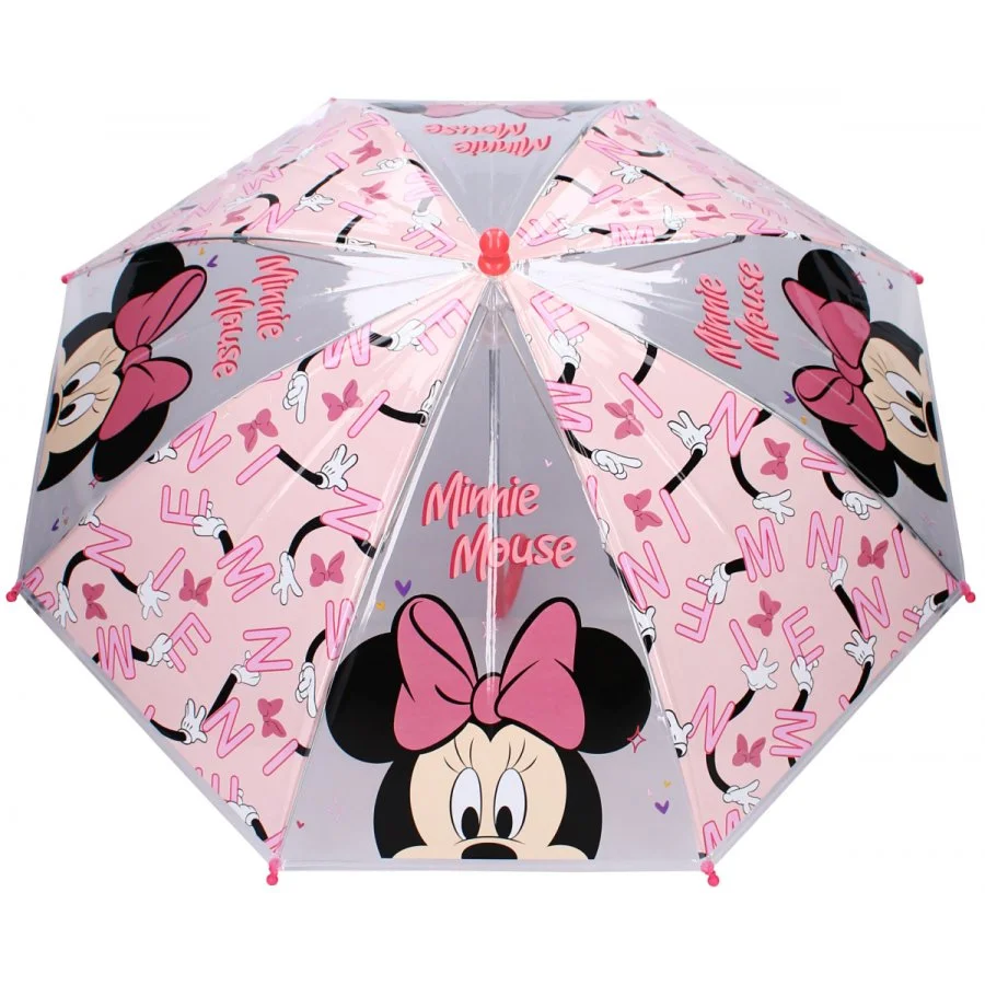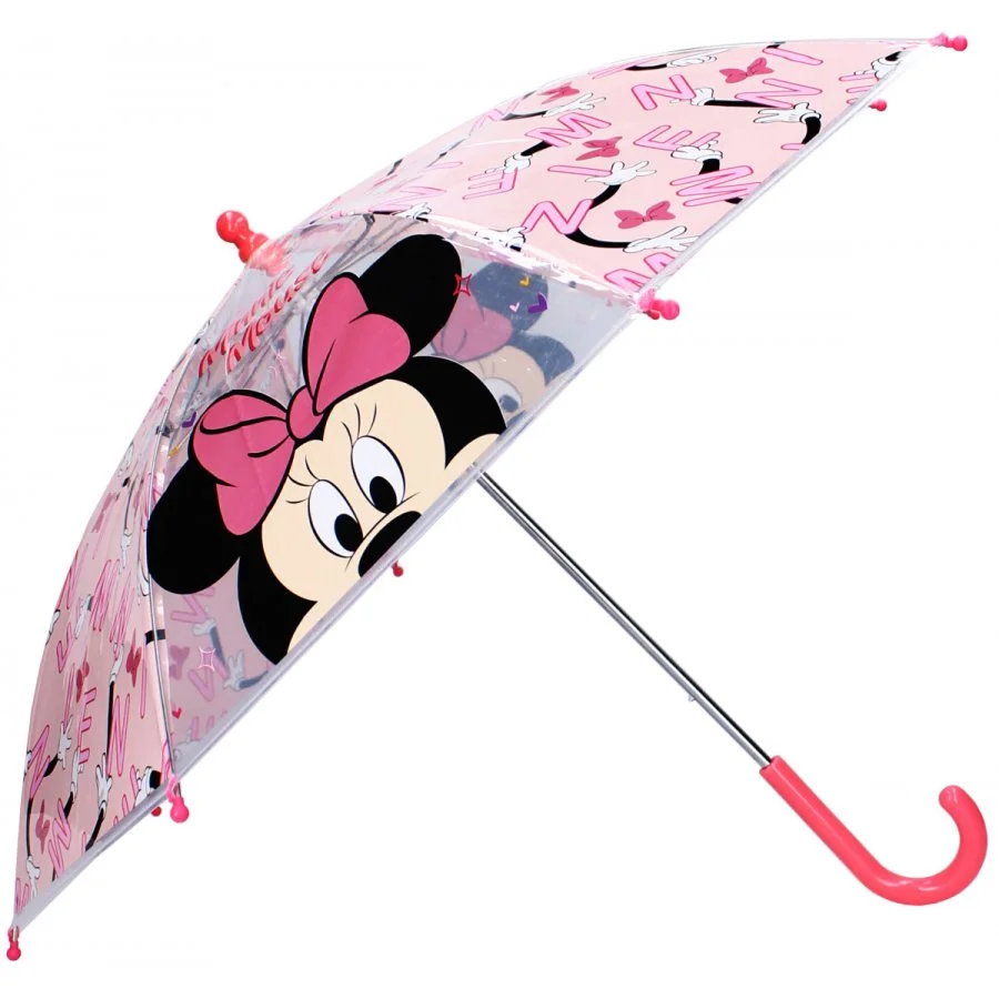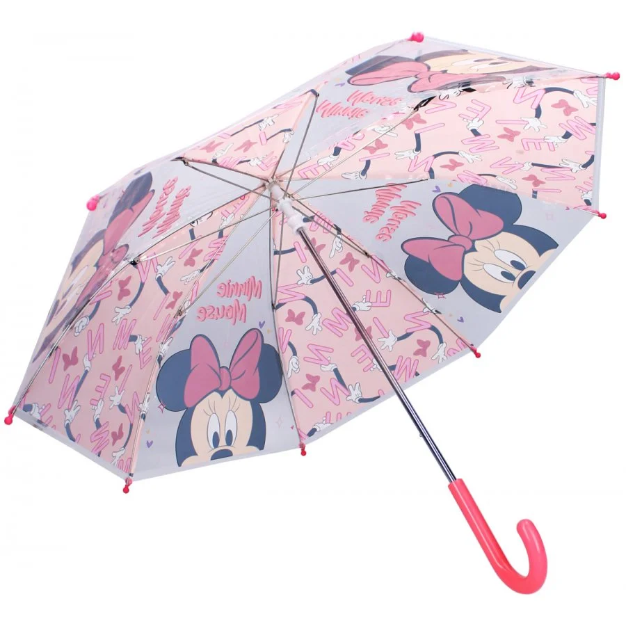 Dívčí deštník s oblíbeným motivem Minnie Mouse od Disney. Jistě potěší každou malou fanynku legendární myšky Minnie. Potah deštníku je vyroben z odolného transparentního polyolefinového elastomeru (POE), který zaručuje dlouhou životnost, a plastová rukojeť s hladkým povrchem poskytuje pohodlný úchop pro malé ruce. Průměr rozevřeného deštníku je přibližně 65 cm a délka zavřeného 61 cm, což z něj činí perfektní doplněk pro děti. S tímto stylovým deštníkem Minnie Mouse zůstane vaše holčička vždy v suchu a navíc bude vypadat skvěle při každém deštivém dni.