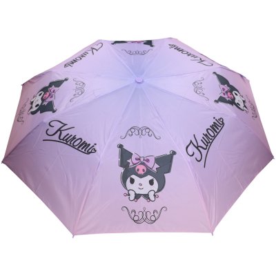 Dětský skládací deštník Kuromi. Kovová konstrukce, potah s oblíbeným motivem ze světa Sanrio, ...