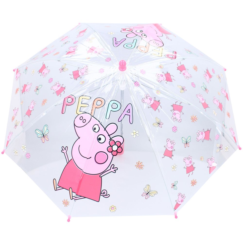 Dětský deštník s motivem Prasátko Peppa. Konstrukce deštníku je kovová, potah je vyroben z odolného materiálu, plastová rukojeť s hladkým povrchem je přizpůsobená pro malé ruce. Průměr rozevřeného deštníku je cca 68 cm.
