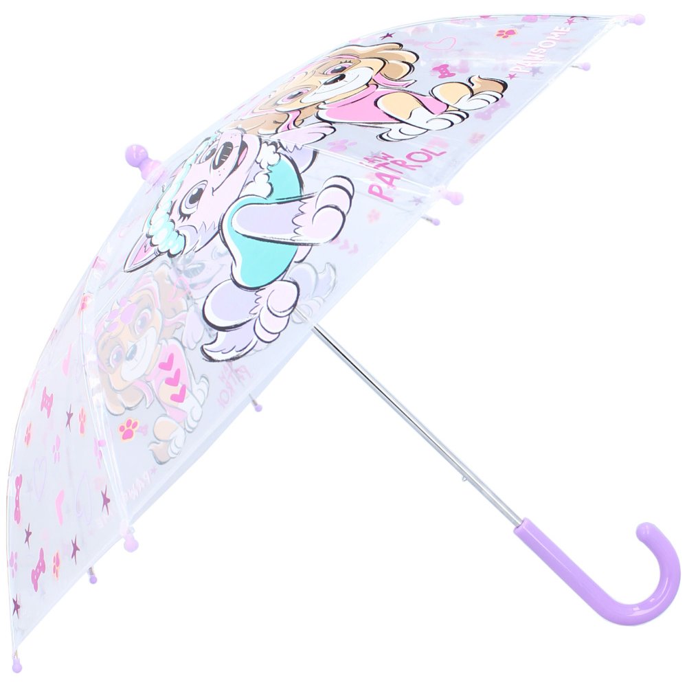 Dětský deštník Paw Patrol s motivem Skye a Everest. Konstrukce deštníku je kovová, potah je vyroben z odolného materiálu, plastová rukojeť s hladkým povrchem je přizpůsobená pro malé ruce. Průměr rozevřeného deštníku je cca 68 cm.