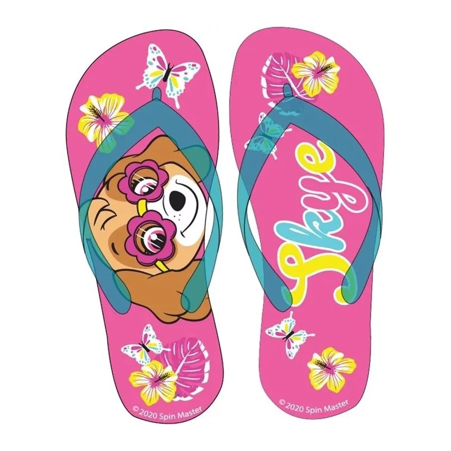 Letní pantofle Tlapková patrola - Paw Patrol - motiv Skye. Podrážka je vyrobena z 13 mm silného polyethylenu, pásky jsou plastové. Tyto žabky jsou vhodné k vodě, ale i na běžné nošení v letních měsících.