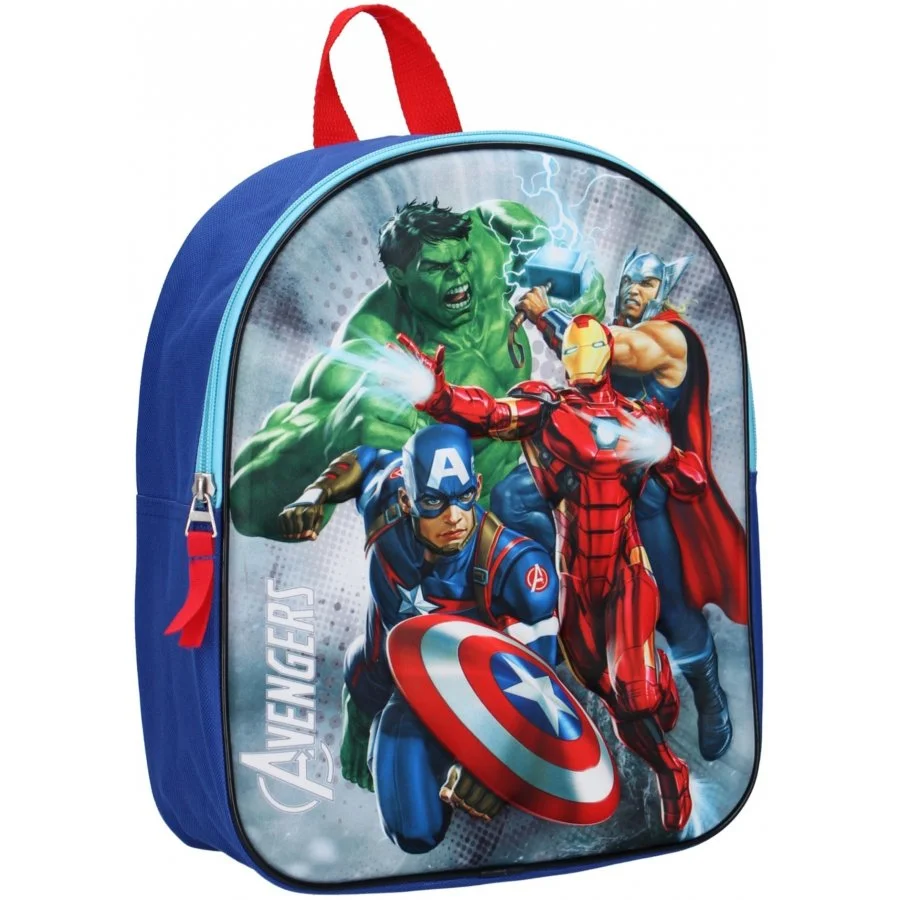Dětský batůžek Avengers - s plastickým 3D obrázkem Kapitána Ameriky, Hulka, Iron Mana a Thora, který vystupuje téměř 2 cm nad povrch. Batoh má jeden oddíl se zapínáním na zip. Popruhy na záda mají měkkou výstelku a jsou nastavitelné. Nechybí ani ucho na zavěšení. Rozměry tohoto batohu Avengers jsou cca 31 x 25 x 12 cm.