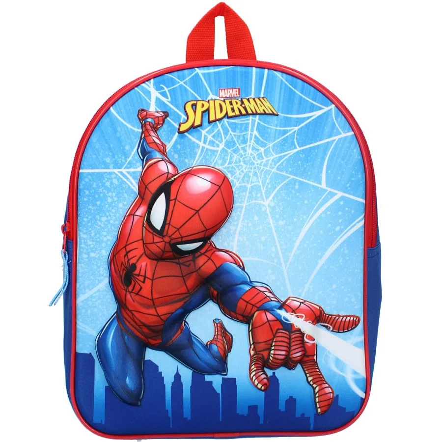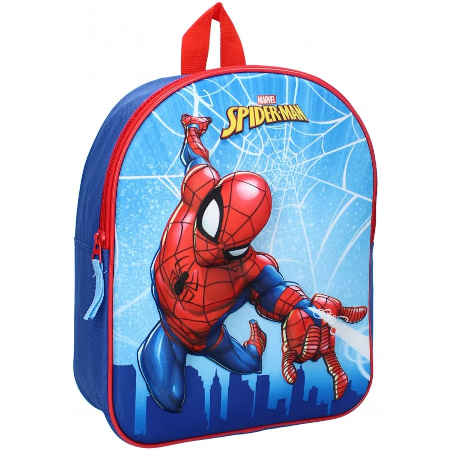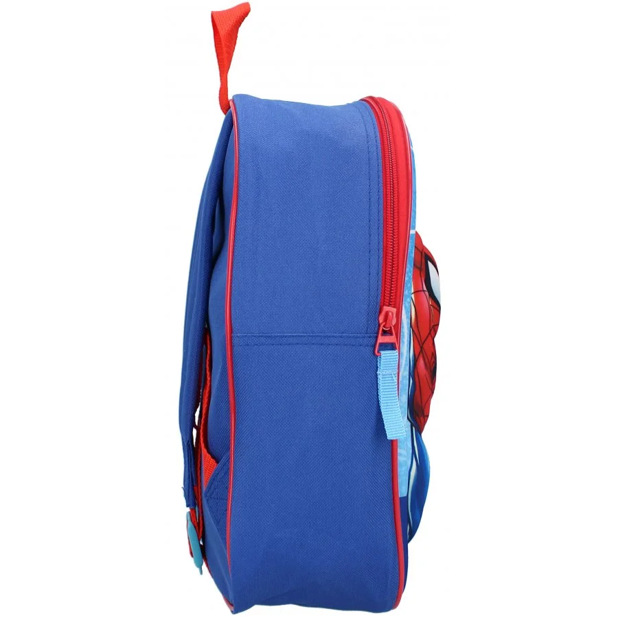 Chlapecký batůžek Spiderman - s plastickým 3D obrázkem Spidermana, který vystupuje téměř 2 cm nad povrch. Batoh má jeden oddíl se zapínáním na zip. Popruhy na záda mají měkkou výstelku a jsou nastavitelné. Nechybí ani ucho na zavěšení. Rozměry tohoto batohu Spiderman jsou cca 31 x 25 x 12 cm. Poslední obrázek u produktu znázorňuje poměr velikosti batůžku ku postavě výšky 110 cm.