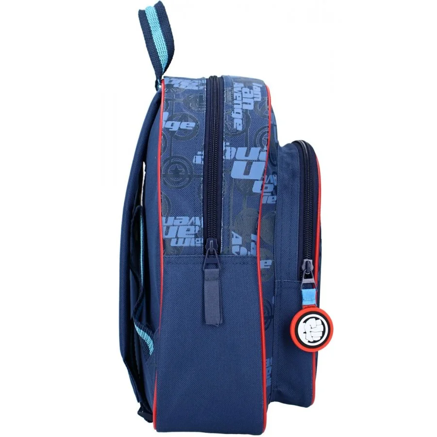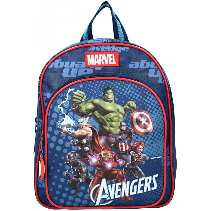 Dětský batoh Avengers - MARVEL - s obrázkem oblíbených členů týmu Avengers Kapitána Ameriky, Hulka, Thora, Black Widow a Black Panthera. Batoh má jednu hlavní komoru a velkou přední kapsu, obě se zapínáním na zip. Popruhy mají měkkou výstelku a jejich délka je nastavitelná. Nechybí ani ouško na nošení v ruce, nebo na zavěšení. Rozměry tohoto batohu Avengers jsou cca 30 x 25 x 11 cm. Poslední obrázek v galerii znázorňuje velikost batůžku k postavě výšky 110 cm.