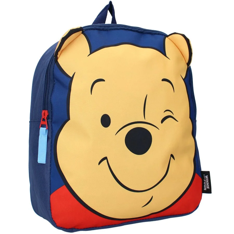 Dětský batoh s motivem Medvídek Pú. Celou přední stranu zdobí obrázek legendárního medvídka Pú. Tento batůžek má jeden oddíl se zapínáním na zip. Popruhy na záda mají měkkou výstelku a jsou nastavitelné. Nechybí ani ucho na zavěšení, nebo nošení v ruce. Jeho rozměry jsou cca 31 x 25 x 10 cm.