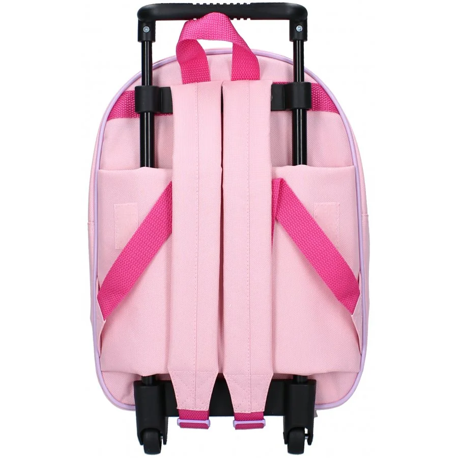 Dětský cestovní kufřík na kolečkách Minnie Mouse - Disney. Tento dětský trolley má jednu komoru o velikosti 33 x 25 x 11 cm se zapínáním na zip. Z přední částí je obrázek legendární parádnice myšky Minnie. Dále je vybaven výsuvným držadlem s plastovým madlem, textilním uchem na zavěšení a samozřejmě kolečky a předními nožkami. Navíc jsou na zadní straně i nastavitelné polstrované popruhy na záda, takže ho lze použít i jako batoh. Poslední obrázek v galerii znázorňuje velikost tohoto batůžku na kolečkách k postavě výšky 110 cm.