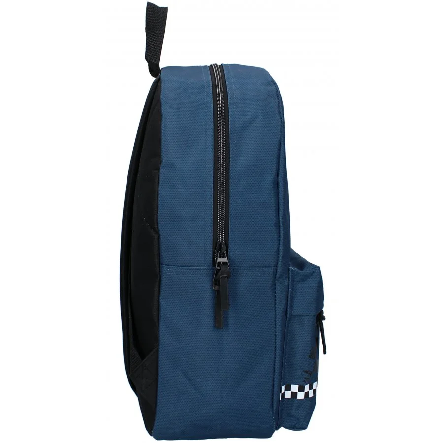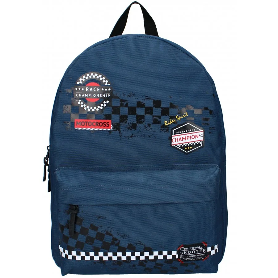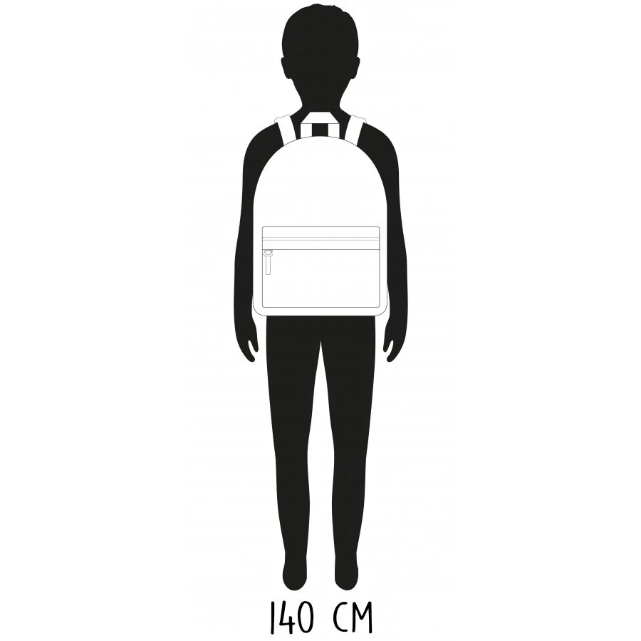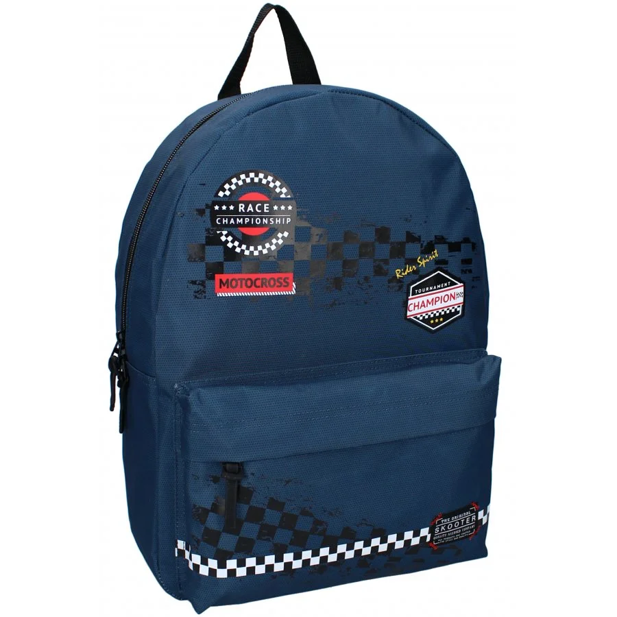 Batůžek Motocross Championship ze série Skooter Wild Games. Tento ruksak má jednu hlavní komoru a prostornou přední kapsu, oboje se zapínáním na zip. Popruhy na záda mají měkkou výstelku a jsou nastavitelné. Nechybí ani ucho na zavěšení, nebo nošení v ruce. Rozměry tohoto batohu pro teenagery jsou cca 39 x 29 x 12 cm. Poslední obrázek u produktu znázorňuje poměr velikosti batůžku ku postavě výšky 140 cm.