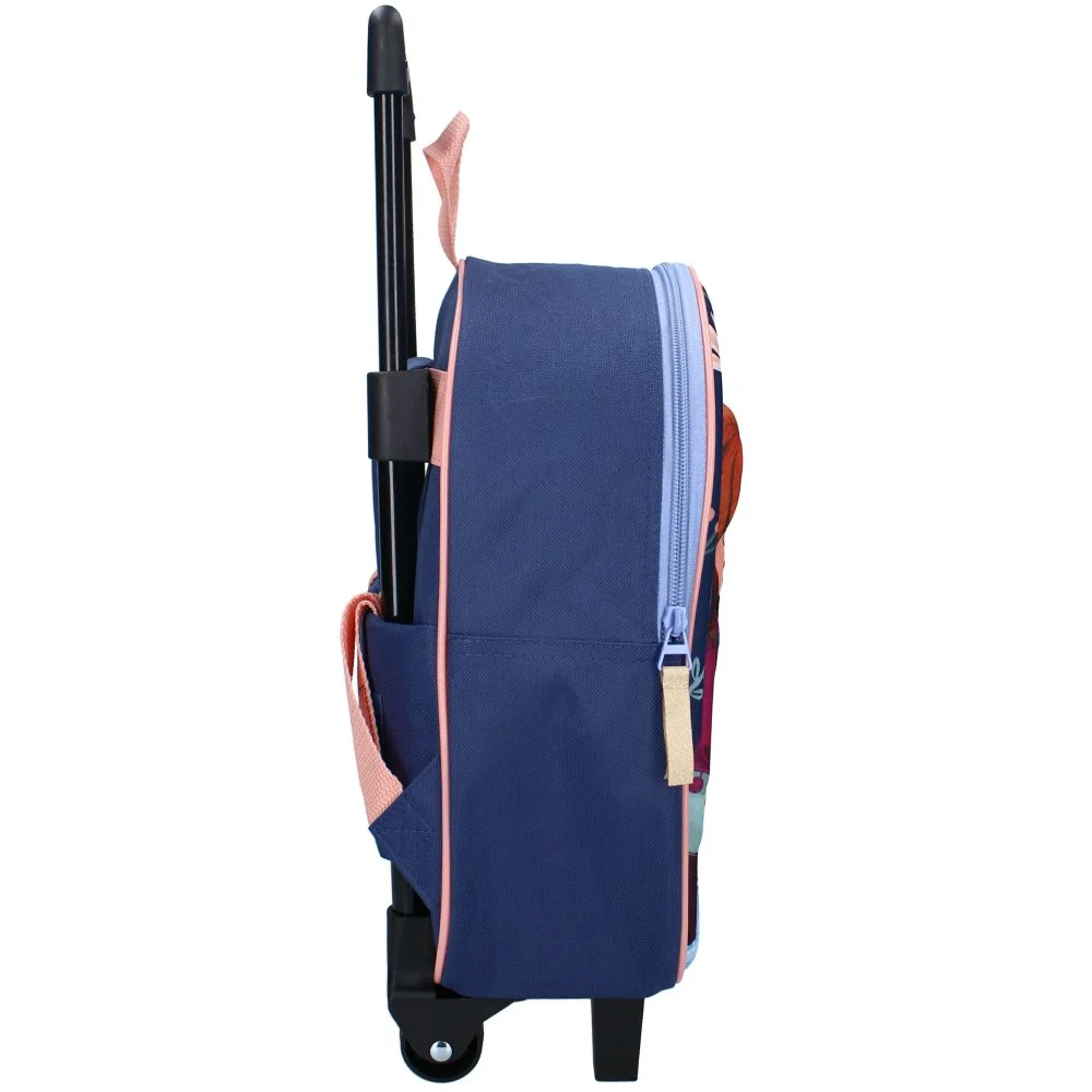 Více o produktuDětský trolley Frozen s plastickým 3D obrázkem princezen Anny a Elsy na tmavě modrém podkladu s jemnými růžovými akcenty. Tento kouzelný kufřík z kolekce „Great Escapes“ je ideální pro malé fanynky Ledového království na víkendové výlety i delší cesty. Prostorná hlavní komora o rozměrech cca 32 x 26 x 11 cm poskytuje dostatek místa na všechny dětské nezbytnosti, hračku i knížku pohádek. Kufřík je vybaven výsuvným držadlem, kolečky a praktickým uchem na nošení v ruce. Navíc má i polstrované popruhy, díky kterým jej lze pohodlně nosit na zádech jako batoh.