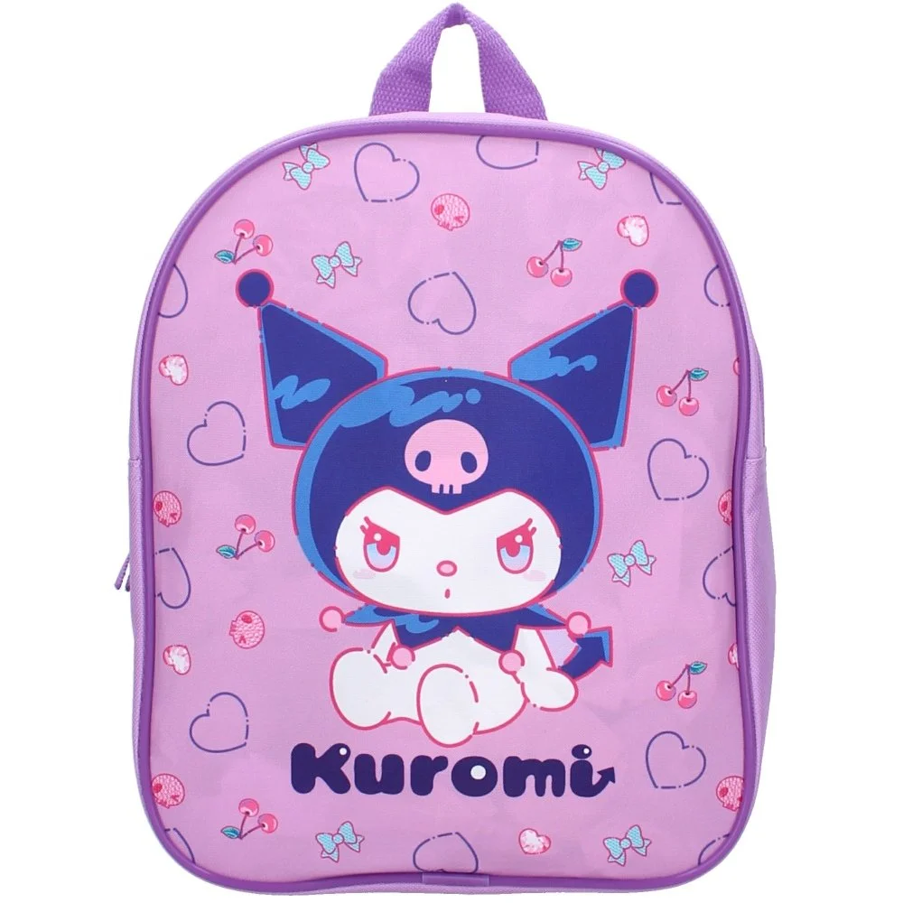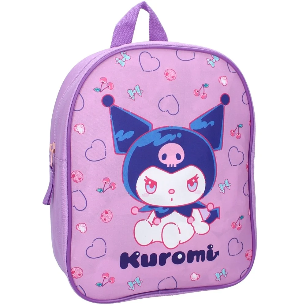 Malý dětský batoh Kuromi s roztomilým obrázkem oblíbené postavičky v kawaii stylu od společnosti Sanrio. Hlavní prostor má zapínání na zip a rozměr cca 29 x 22 x 9 cm. Nechybí ani nastavitelné popruhy s výstelkou a praktické ouško na zavěšení.