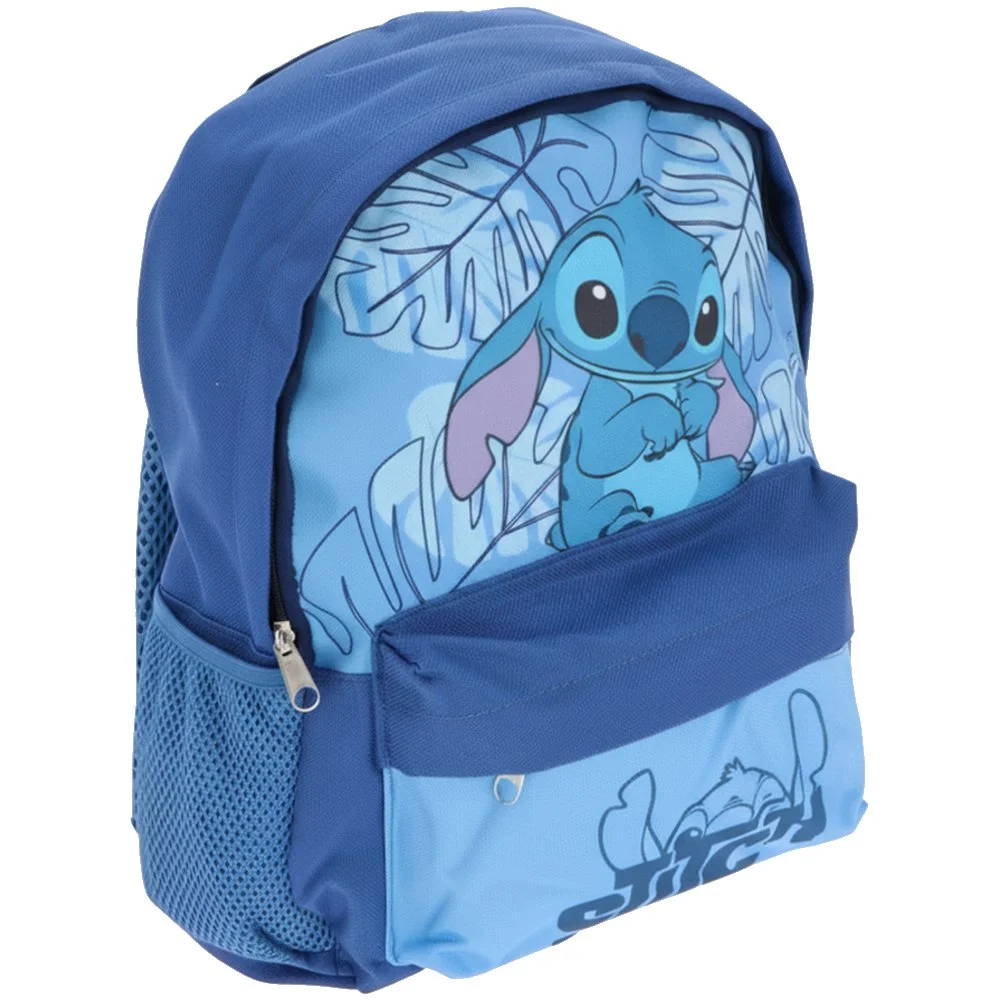 Dětský batoh pro kluky Stitch s jedním hlavním prostorem a přední kapsou na zip. Má nastavitelné a polstrované popruhy pro pohodlné nošení a ouško na zavěšení či přenášení v ruce. Velikost cca 30 × 24 × 12 cm je ideální do školky, na hřiště i na menší výlet.