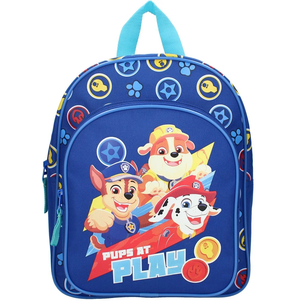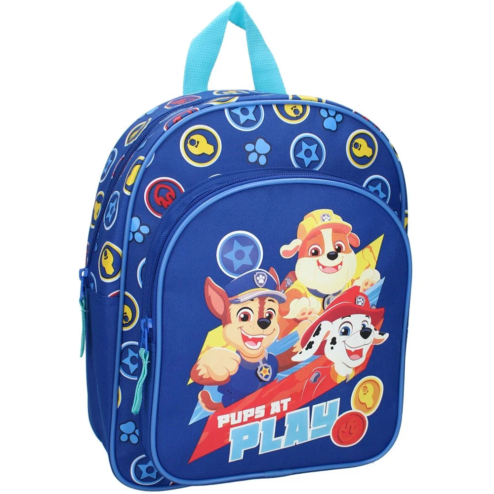 Chlapecký batůžek Paw Patrol s motivem Pups at Play. Má jednu hlavní přihrádku a přední kapsu na zip, nastavitelné polstrované popruhy a ucho na zavěšení nebo nošení v ruce. Rozměry cca 30 x 25 x 11 cm.