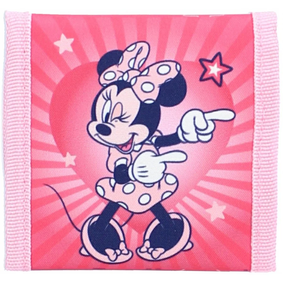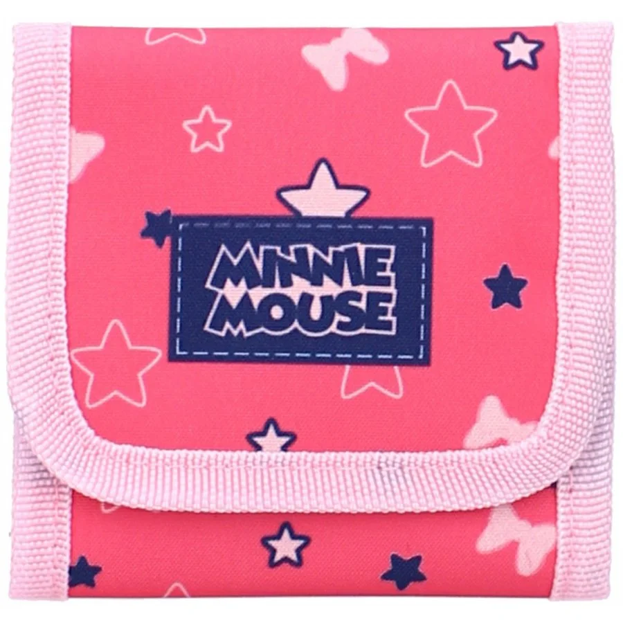Dětská textilní peněženka Minnie Mouse - Disney. Tato dívčí peněženka s obrázkem legendární myšky Minnie je vyrobena z kvalitní polyesterové tkaniny. Peněženka se uzavírá klopou se suchým zipem. Uvnitř je přihrádka na bankovky, dvě kapsy na karty a kapsa na mince se zipem. Takováto peněženka nesmí chybět ve výbavě žádné školačky, ať už na drobné či papírové peníze, kartu do školní jídelny, jízdenky a podobně - vše přehledně a bezpečně na jednom místě. Rozměry zavřené peněženky jsou cca 10 x 10 cm, rozložené peněženky 10 x 25 cm.