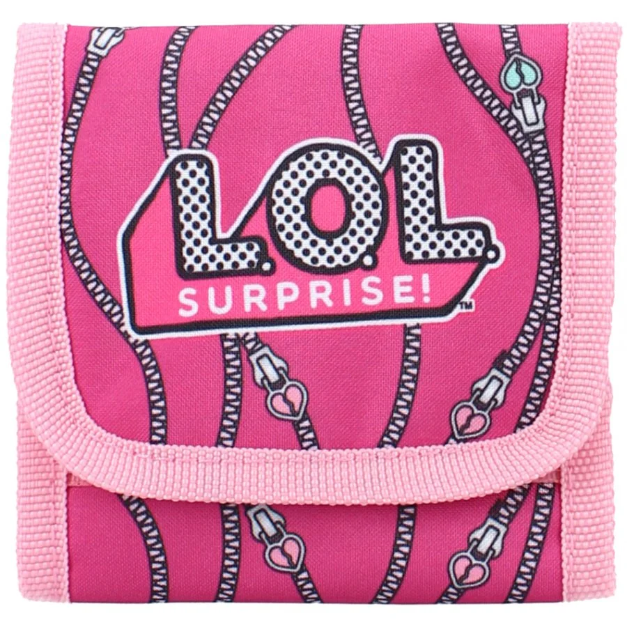 Textilní peněženka L.O.L. Surprise. Tato dětská peněženka s obrázkem tří okatých panenek LOL je vyrobena z kvalitní polyesterové tkaniny. Peněženka se uzavírá klopou se suchým zipem. Uvnitř je přihrádka na bankovky, dvě kapsy na karty a kapsa na mince se zipem. Takováto peněženka nesmí chybět ve výbavě žádné školačky, ať už na drobné či papírové peníze, kartu do školní jídelny, jízdenky a podobně - vše přehledně a bezpečně na jednom místě. Rozměr zavřené peněženky je cca 10 x 10 cm, rozložené peněženky 10 x 22 cm.