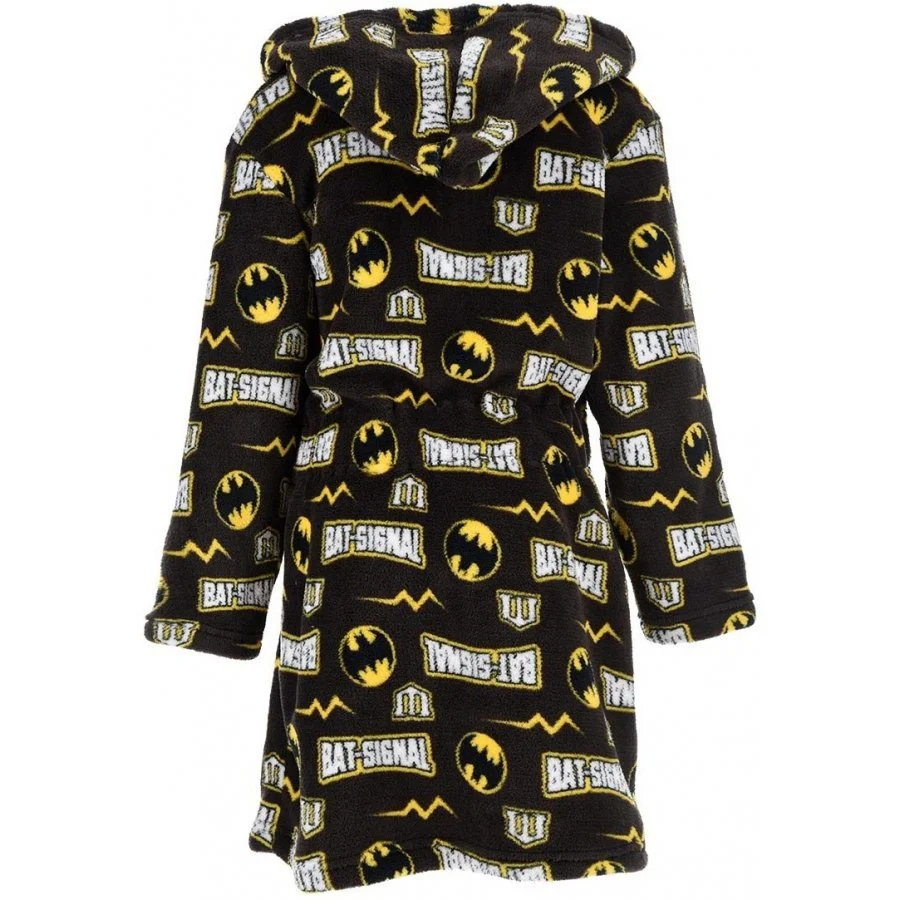 Dětský župánek Batman - motiv Bat-Signal. Tento chlapecký župan je vyrobený z příjemně jemného a hřejivého sametového coral fleece WellSoft 190 g/m² s logy komiksového a filmového superhrdiny Batmana. Promítání loga s netopýrem speciálně upraveným světlometem na zataženou oblohu užívá policie města Gotham City jako signál v případě potřeby pomoci od Batmana. Tento župan nabízíme ve světle šedé, nebo hnědé variantě. Župan má kapuci, dvě kapsy a samozřejmě pásek v pase.