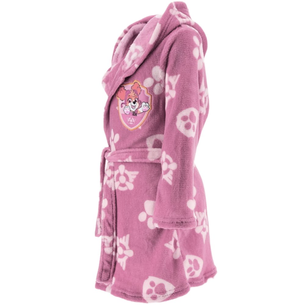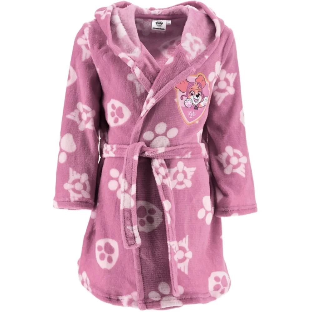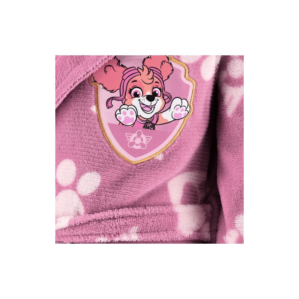 Dětský župánek Paw Patrol s obrázkem oblíbené záchranářky Skye a potiskem psích tlapek. Má kapuci a pásek v pase. Vyrobený z mimořádně hebkého materiálu WellSoft. Dostupný ve velikostech 98, 104, 110 a 116.