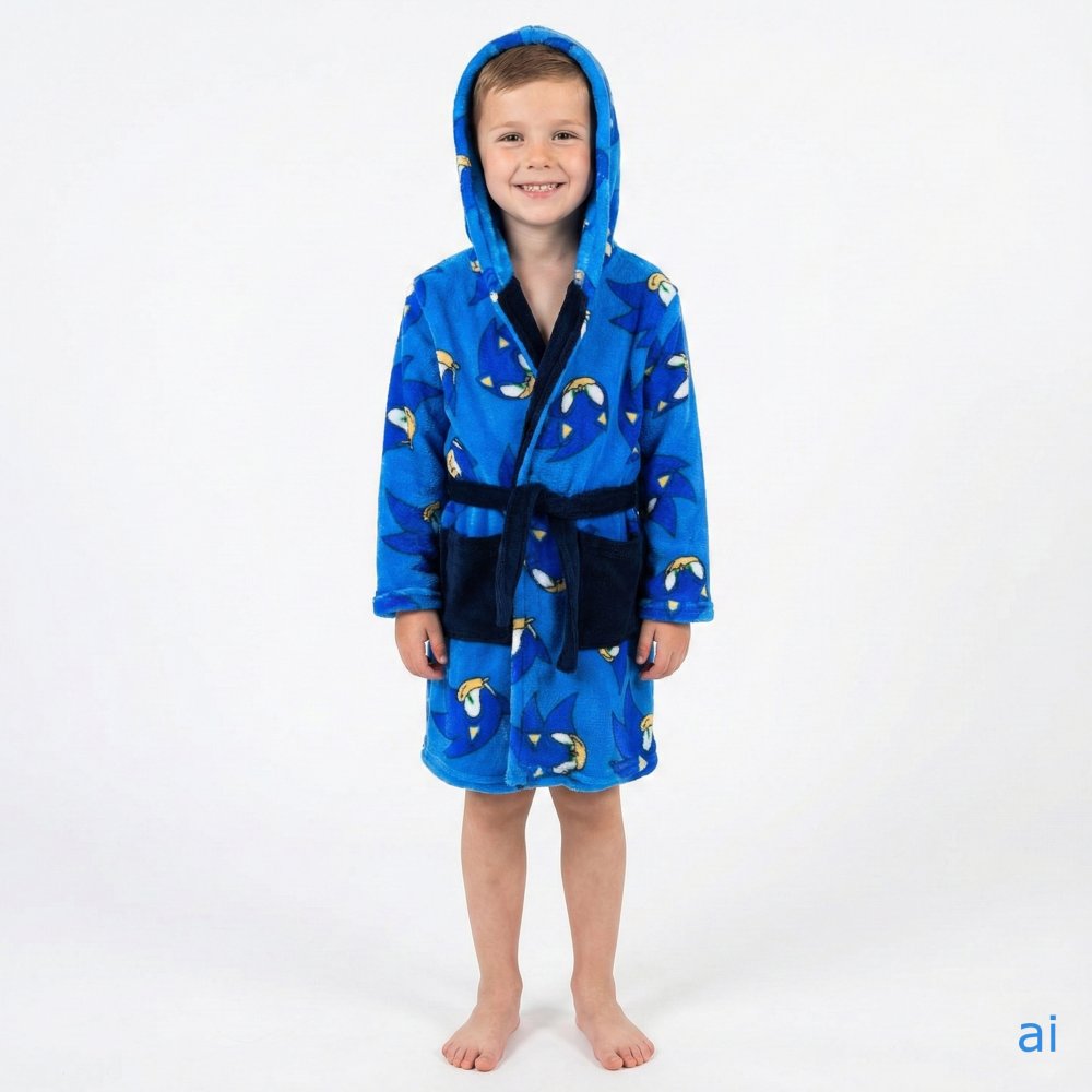 Dětský župánek Ježek Sonic s motivem nejrychlejšího ježka na světě. Má kapuci, dvě kapsy a pásek v pase. Vyrobený z mimořádně hebkého materiálu WellSoft. Dostupný ve velikostech 98, 104, 116 a 128.